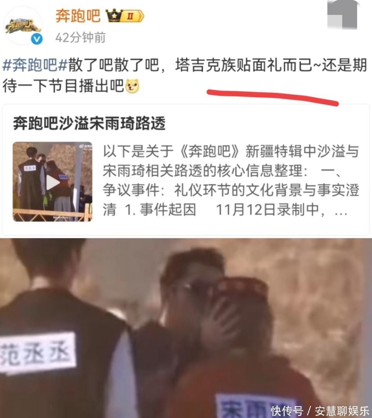 节目组赶紧出来回应说散了吧散了吧,这是塔吉克族的贴面礼而已,让大家等节目播出再说,这话听着挺轻松,可架不住网友啊,你说议论的那叫一个热闹!