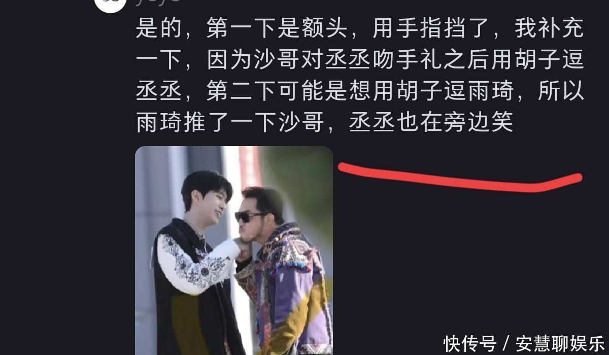还有侧面那张照片更明显,范丞丞就在旁边笑呢,看那架势就是在闹着玩儿,压根不是啥暧昧的样子,有网友说之前沙溢拿胡子扎了范丞丞,后来想逗逗宋雨琦,这才有了那个动作,现场气氛挺欢乐的,哪有网上说的那么夸张!